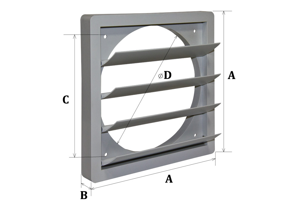 Заслонки жалюзи типоразмером выше 45 оснащены литым противовесом. Скорость воздушного потока не должна превышать 12 м/сек. Жалюзи просты в установке. Винты и заглушки входят в комплект поставки.